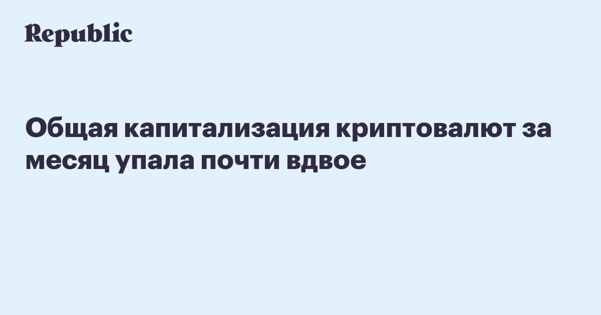 Общая капитализация криптовалют за месяц упала почти вдвое
