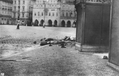 6–8 мая в боях в Праге на стороне чешских повстанцев активное участие приняла 1-я дивизия войск Комитета освобождения народов России (КОНР). Чаще всего этих людей называют власовцами, хотя в данном случае это не совсем точно: генерал Власов в пражских событиях непосредственного участия не принимал, а командовал 1-й дивизией КОНР генерал Сергей Буняченко – бывший полковник Красной армии, перешедший в плену на сторону немцев. Теперь его дивизия, направлявшаяся на запад, чтобы сдаться американцам, повернула оружие против немецких войск и оказала помощь плохо вооруженным пражским повстанцам. По мнению чешского историка Павла Жачека, помощь эта была решающей: благодаря ей немцы были остановлены, а повстанцам удалось достичь договоренности с Шёрнером о том, что его войска покинут Прагу. К моменту появления в городе первых частей Красной армии 9 мая город был фактически освобожден, сопротивление оказывали лишь отдельные подразделения СС, успевшие "отметиться" также расправами над гражданским населением.