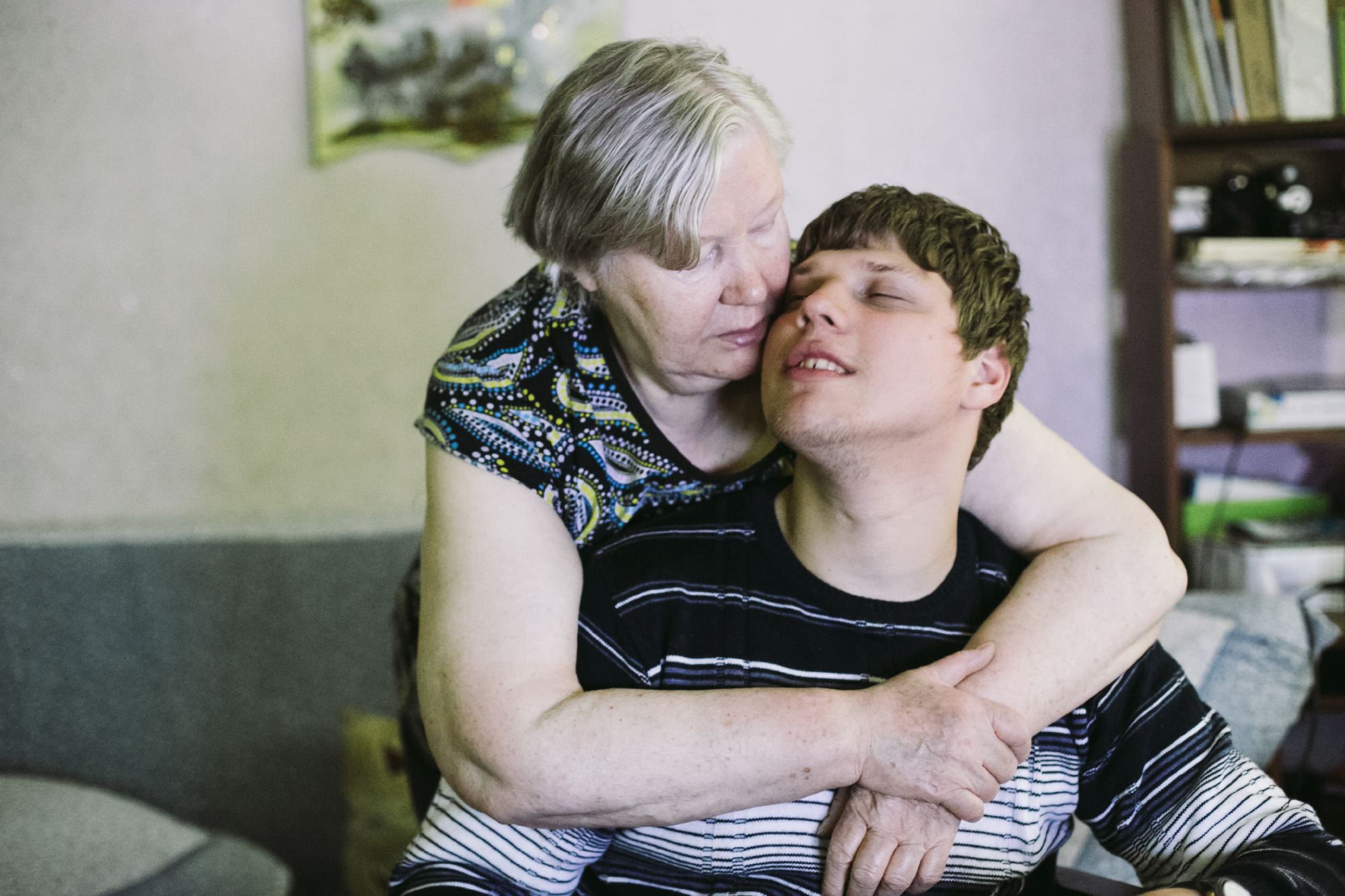 То, что Вова вырос таким, каким я вижу его сейчас, — это полностью заслуга его бабушки, Людмилы Яковлевны. Вова не может жить без нее. Он снова и снова обнимает ее непослушными руками, неловко прижимает к себе и много-много раз целует. «Парень-то какой вырос красивый! Лучше бы был пострашнее, хлопот было бы меньше», — смеется она. Обнять в ответ внука она не может — руки стали слишком слабыми.