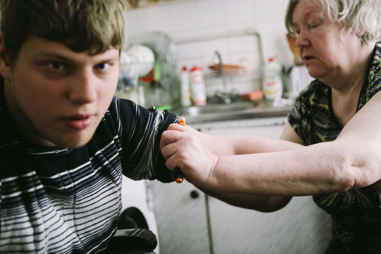 У Вовы целый букет диагнозов: ДЦП, «умственная отсталость», «диабет». У него нет никого, кроме восьмидесятилетней бабушки, которую он очень любит. Он часто неловко обнимает ее, но она уже не может обнять его в ответ — руки стали слишком слабыми