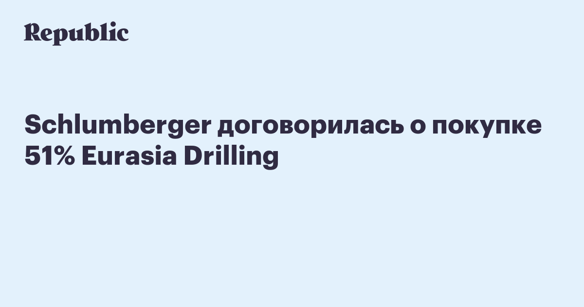 Schlumberger договорилась о покупке 51% Eurasia Drilling