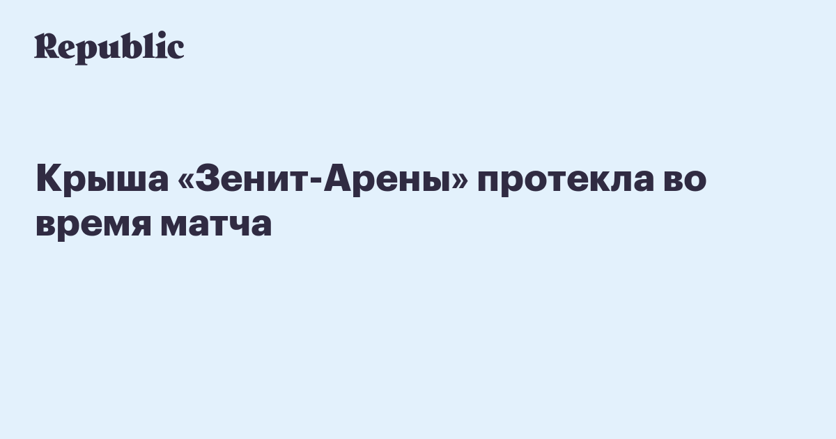 Крыша «Зенит-Арены» в Санкт-Петербурге, которую закрыли из-за дождя, протекла в первом тайме мачта между «Зенитом» и «Рубином», сообщает в твиттере журналист газеты «Спорт-Экспресс» Гоша Чернов.
