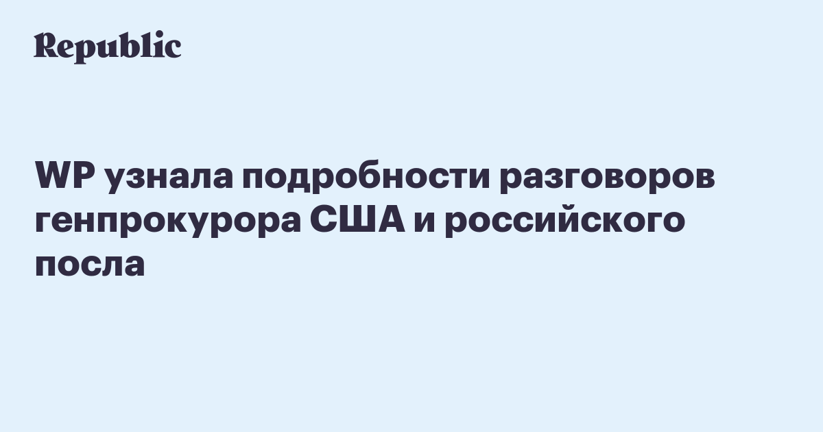 WP узнала подробности разговоров генпрокурора США и российского посла