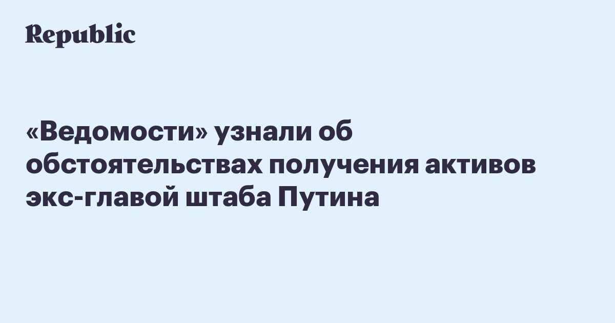 «Ведомости» узнали об обстоятельствах получения активов экс-главой штаба Путина