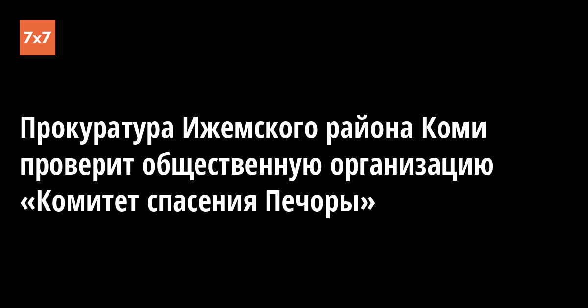 Прокуратура Ижемского района проверит Комитет спасения Печоры (КСП) на соответствие требованиям федерального законодательства об общественных объединениях. Об этом 25 июля «7x7» сообщил заместитель председателя организации Иван Иванов.
