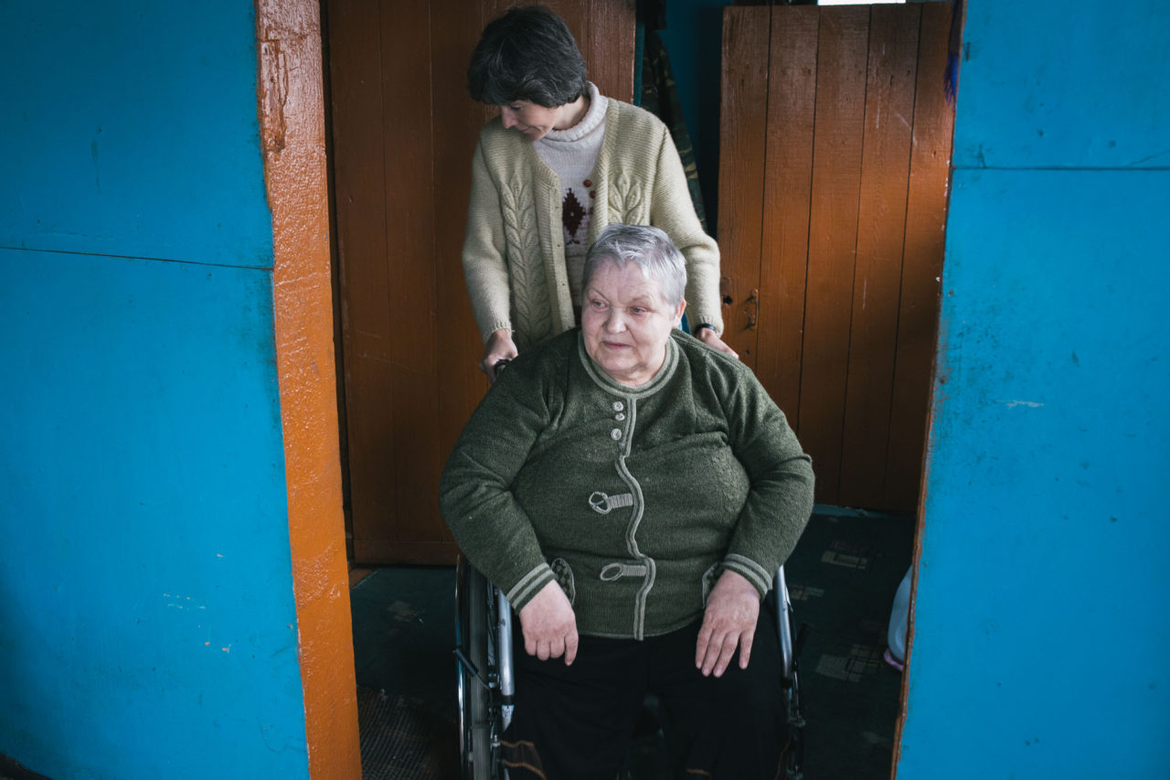 Надежда Прокопьевна не выходит из дома почти полтора года. 16 марта 2016 ей ампутировали ногу — в результате довольно простой операции на коленном суставе занесли инфекцию. Первые месяцы Надежда Прокопьевна просто лежала и плакала. Помощь пришла от патронажной службы «Каритас». Ирина и Алена буквально заново научили ее ходить.