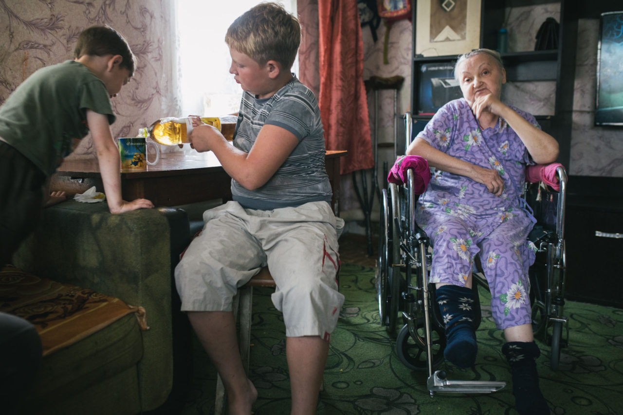 У Ольги Васильевны трое детей и десять внуков, одиннадцатый на подходе. И, сидя в инвалидной коляске, она выглядит счастливой. «Да, одиннадцать внуков у меня. Вот так. И сейчас я буду этим пользоваться. Ну-ка, внучок, помоги мне, дорогой. Встань с этой стороны. Держи меня». Старший из внуков помогает бабушке встать, мы прощаемся, а Ирина договаривается о следующей встрече после отпуска. Вернувшись, Ирина научит Ольгу Васильевну ходить.