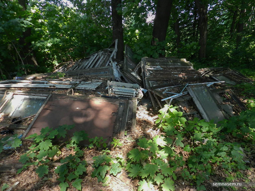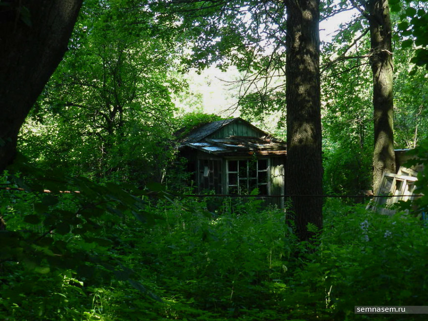 Вместе с Татьяной углубляемся в заросли с еле заметной тропинкой. Старые оконные рамы с выбитыми стеклами, стеклянная тара в ящиках, кучи гнилых досок — всем этим завалено пространство между забором СТ и разваливающимся домом, хозяин которого давно умер. Площадь между забором товарищества и бетонным ограждением психоневрологического диспансера принадлежит неизвестному лицу.