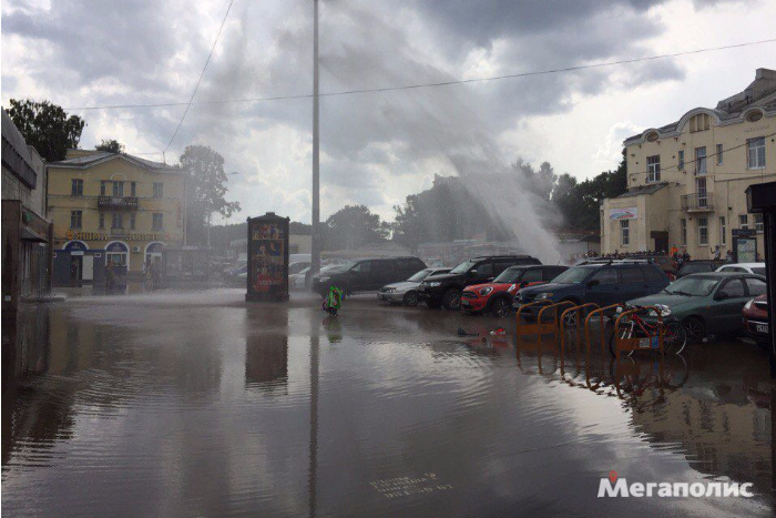 Днем 28 июля напротив станции метро «Удельная» забил фонтан горячей воды высотой несколько метров. Очевидцы сообщают, что припаркованные машины забрасывает камнями из размытого грунта.