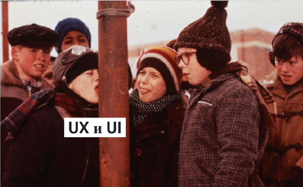 На этом слайде молодой человек получает опыт пользователя, другой только собирается, а кто-то уже передумал. Труба, язык и мороз – это интерфейс.