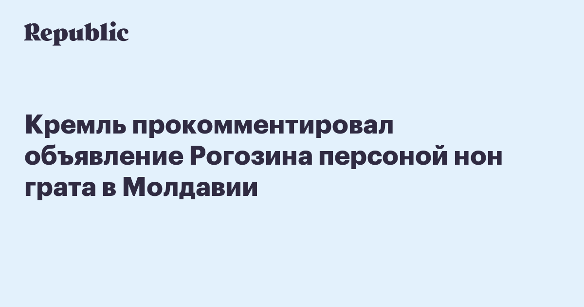 Объявление властями Молдавии вице-премьера России Дмитрия Рогозина персоной нон грата «абсолютно неприемлемо». Об этом заявил пресс-секретарь президента РФ Дмитрий Песков, передает РБК со ссылкой на ТАСС.