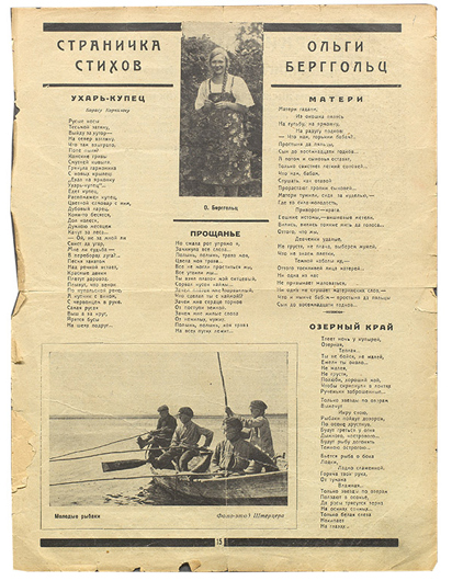 © РГАЛИ Публикация стихотворений О. Ф. Берггольц. Вырезка из журнала «Юный пролетарий», № 13. С. 15. 1928 1928 год