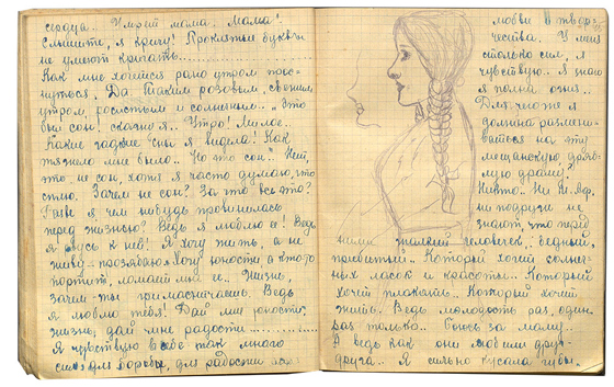 Дневниковые тетради школьных лет представляют собой классический девичий дневник, написанный аккуратным детским почерком с элементами еще дореволюционной орфографии. В них описаны семейный уклад, школьные будни, первая любовь, первые поэтические эксперименты.