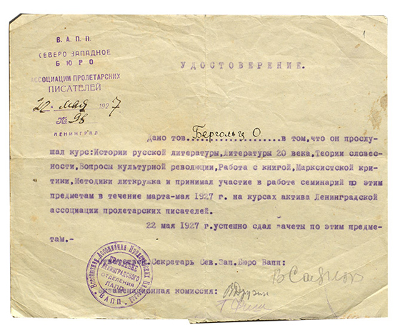 [**] «Я хочу жизни — много, много...»: Дневник О.Ф. Берггольц 1928—1930 годов: К юбилею О.Ф. Берггольц / Публ. Н.А. Прозоровой // Русская литература. 2010. №2. C. 162.