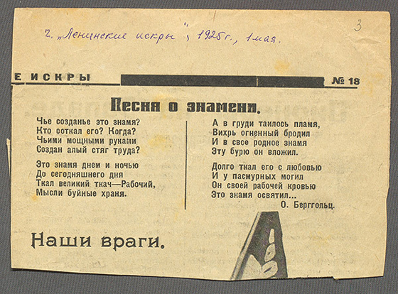 © РГАЛИ Стихотворение О. Ф. Берггольц в газете «Ленинские искры». 1925 6/IX.