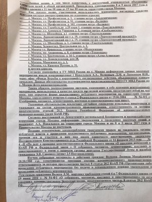 UPD-2: На Леонида Волкова выписали протокол по той же статье. Волков опубликовал фрагмент протокола в твиттере. В документе раздача листовок во время «Протестного субботника» 8 и 9 июля названа «скрытой формой коллективного публичного мероприятия».