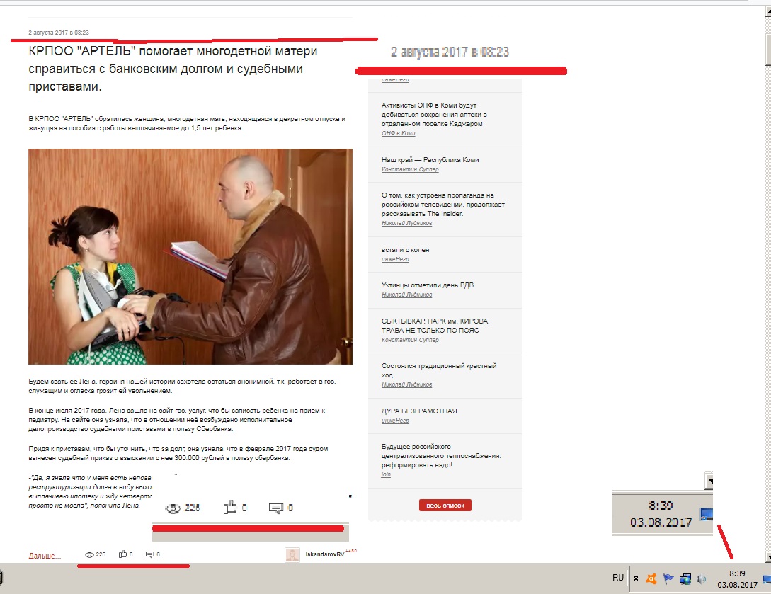 1 августа в 10:45 написал блог о Лене и её борьбе с произволом судебных приставов.
