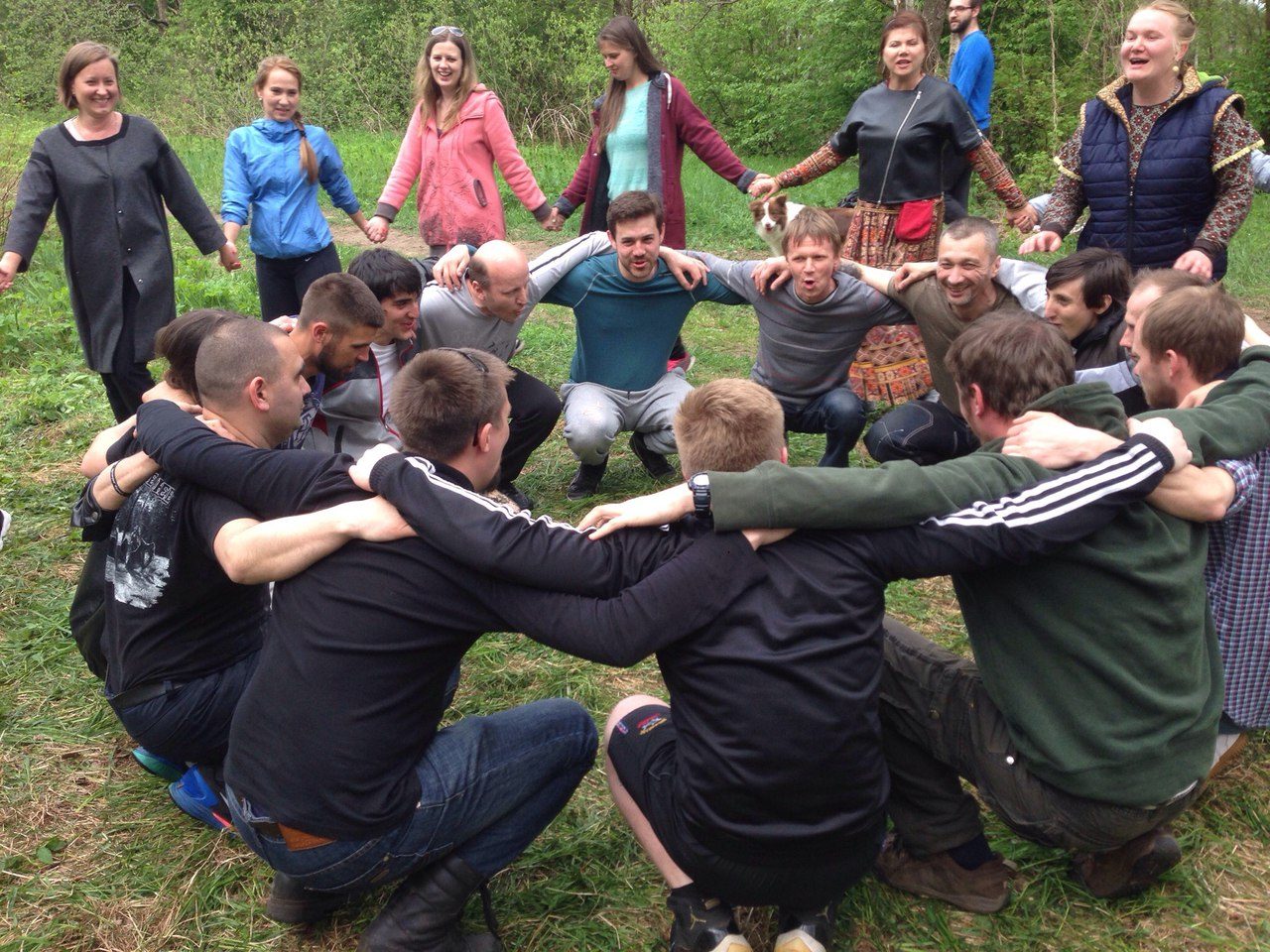 Тут Женя энергично добавляет: «Вот именно, объединение! Сейчас каждый сам по себе, а вспомните притчу про метлу и прутья! По отдельности нас, как и прутья, можно сломать, а вместе — нет. А чтобы объединиться — достаточно взяться за руки и пройтись «ручейком», глядя друг другу в глаза, или, наоборот, разрешить себе последовать за незнакомым человеком в хороводе, закрыв глаза».