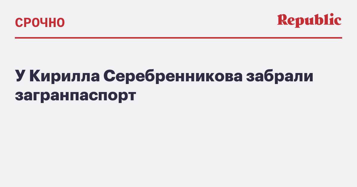 У режиссера Кирилла Серебренникова забрали паспорт из-за дела «Седьмой студии». Об этом он рассказал в интервью Suddeutsche Zeitung.