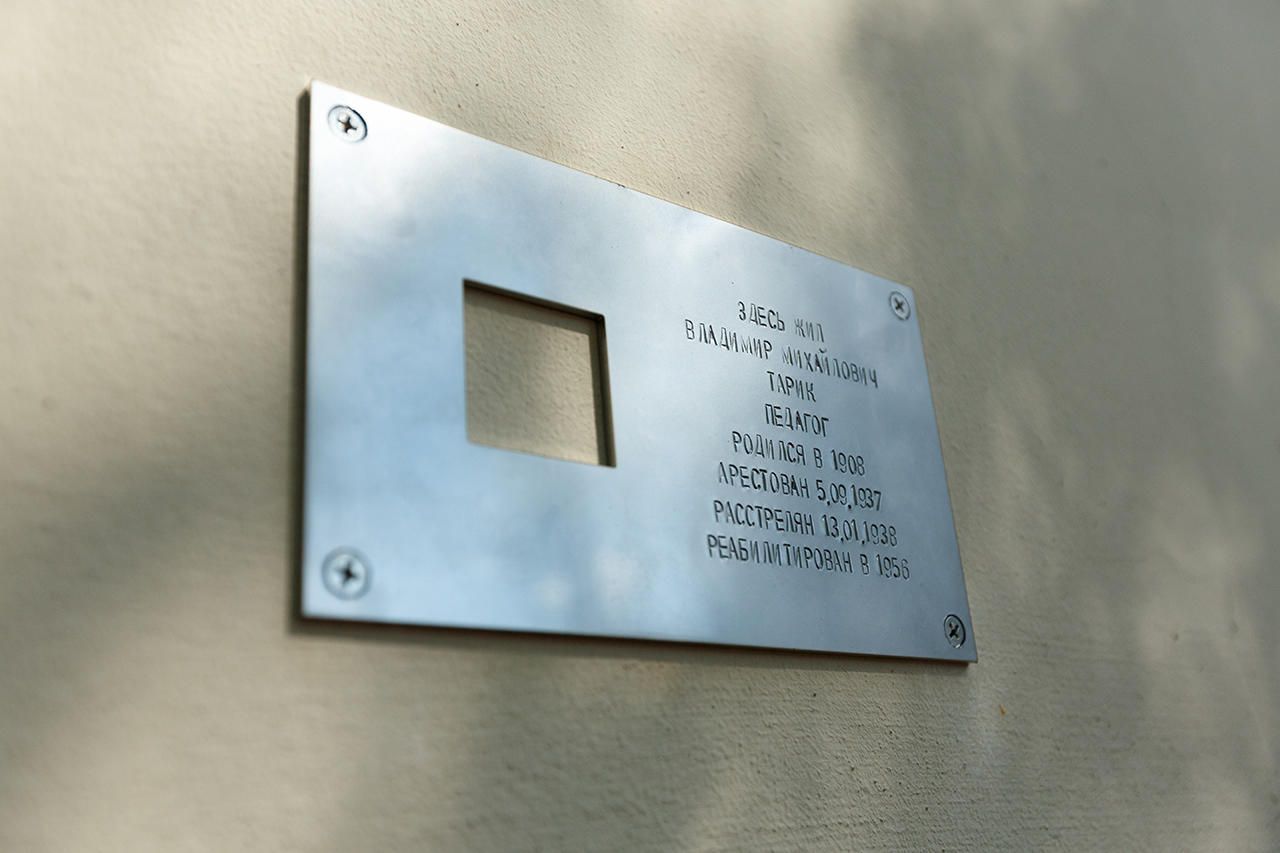 The decision to consent to the memorial plaque was made at the building’s house council. Vladislav Tarik collected the signatures himself. He says the most difficult and unpleasant step in the overall process, however, was getting the necessary permits from local officials. The house of the old Bolsheviks, where Tarik’s father was arrested, is now a recognized cultural heritage site, which means that hanging anything outside the building requires additional permits from regional and city security agencies.