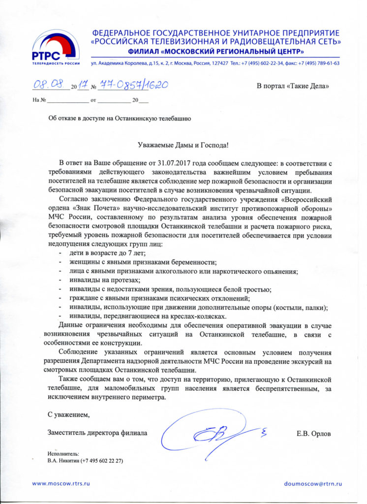 В московском филиале «Российской телевизионной и радиовещательной сети» (РТРС) «Таким делам» сообщили, что отказ был мотивирован соображениями безопасности и возможностями эвакуации в случае ЧС.