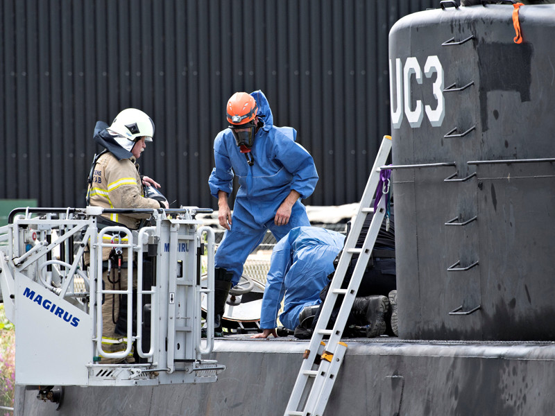 Накануне, 13 августа, представитель датской полиции Йенс Меллер Йенсен сообщил, что подлодка была поднята со дна моря и подвергнута обыску, но тела женщины найти не удалось. Поиск продолжается на воде, на суше и с воздуха. Йенсен дал понять, что полиция обнаружила признаки умышленного затопления лодки.