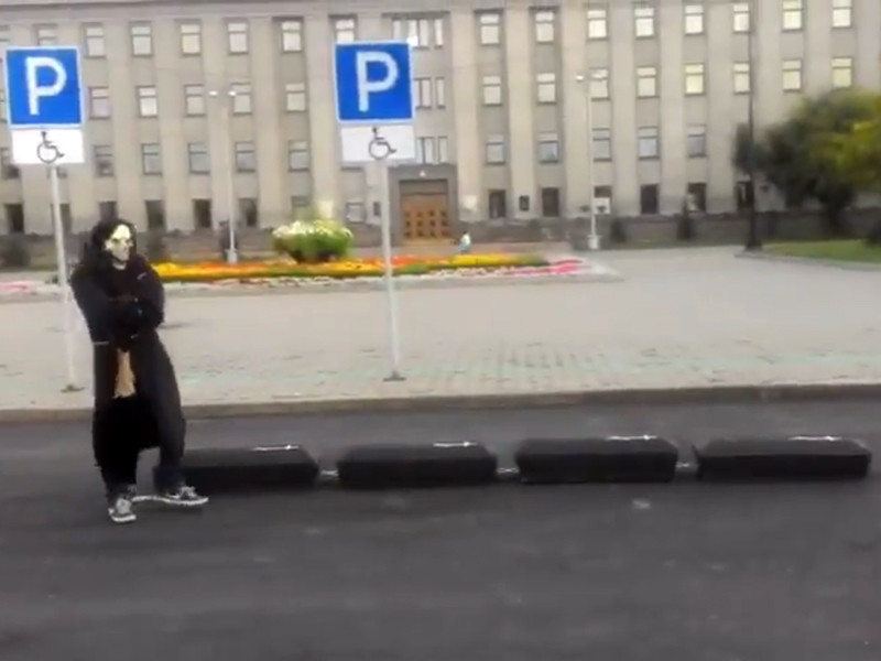 Человек в черном притащил четыре черных гроба к зданию правительства Иркутской области (ФОТО, ВИДЕО)