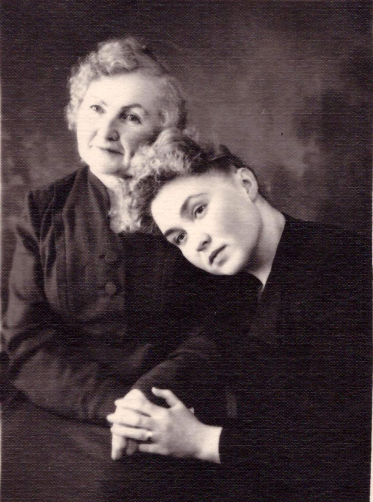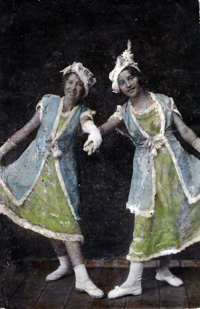 Е. В. Иванова (слева) в польском костюме, изготовленном для спектакля самодеятельного театра «Борис Годунов», 1936 год, г. Новоэкономическое, Донбасс. Надпись на обороте:«Накануне катастрофы 1937 года.