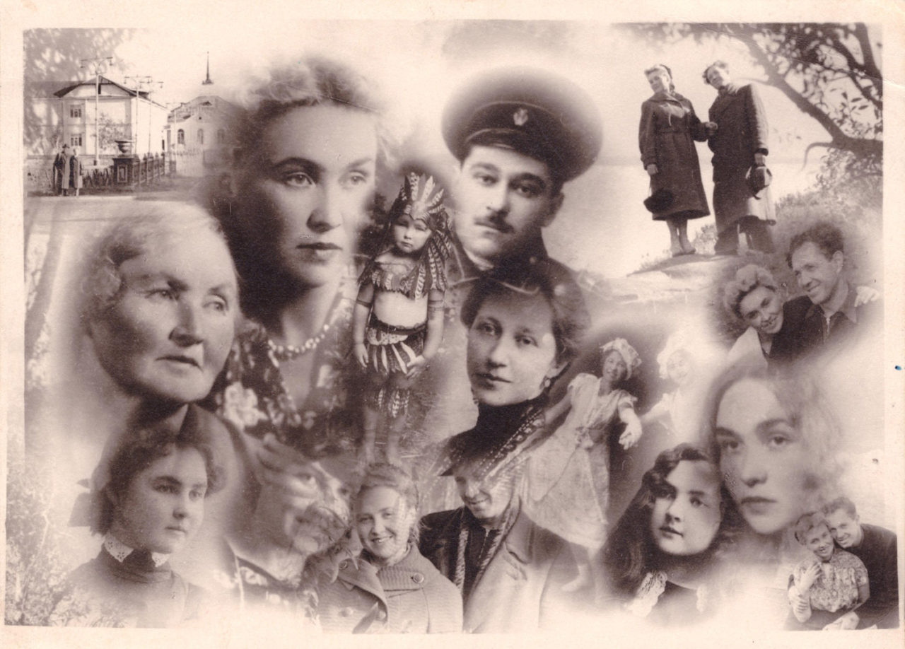 Фоторабота Э. В. Штырцкобера:фотомонтаж «Соединяя прошлое с настоящим», посвященный Е. В. Марковой, 1956 годФото: из личного фонда Марковой Е. В., хранящегося в Государственном музее истории ГУЛАГа (фонд № 5)