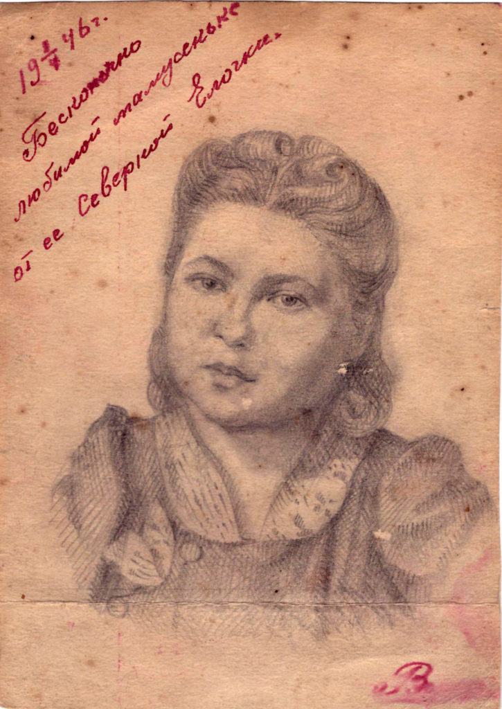 Лагерный портрет, 1946 год. «Бесконечно любимой мамусеньке от ее Северной Елочки»Фото: из личного фонда Марковой Е. В., хранящегося в Государственном музее истории ГУЛАГа (фонд № 5) Иногда для разнообразия следователь начинал развивать тему об антисоветской сущности Лены, которая проявилась еще в ученические годы. Здесь веским аргументом служили репрессированные родители и детские стихи. «Обоснование» выглядело примерно так: «Вот у нас тетрадка твоих стихов. Посмотрим, чем же ты жила. Все советские дети благодарили нашего великого вождя за счастливое детство и преклонялись перед его мудростью. Есть ли у тебя хоть одно такое стихотворение, хоть одна строчка? Нет!»