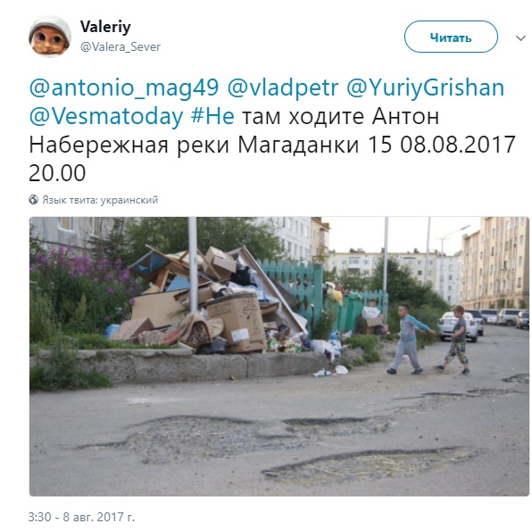 К слову, в твиттере уже появился хештег #нетамходитеАнтон, а горожане продолжают в соцсетях постить фотографии неблагоустроенных улиц Магадана.