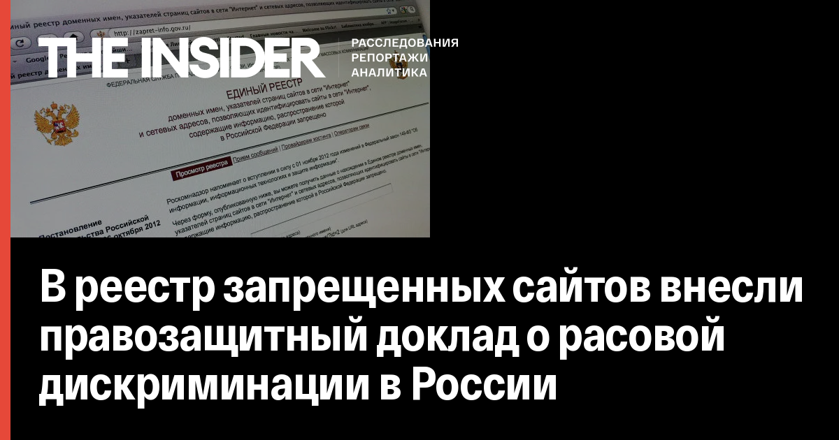 В реестр запрещенных сайтов внесли правозащитный доклад о расовой дискриминации в России