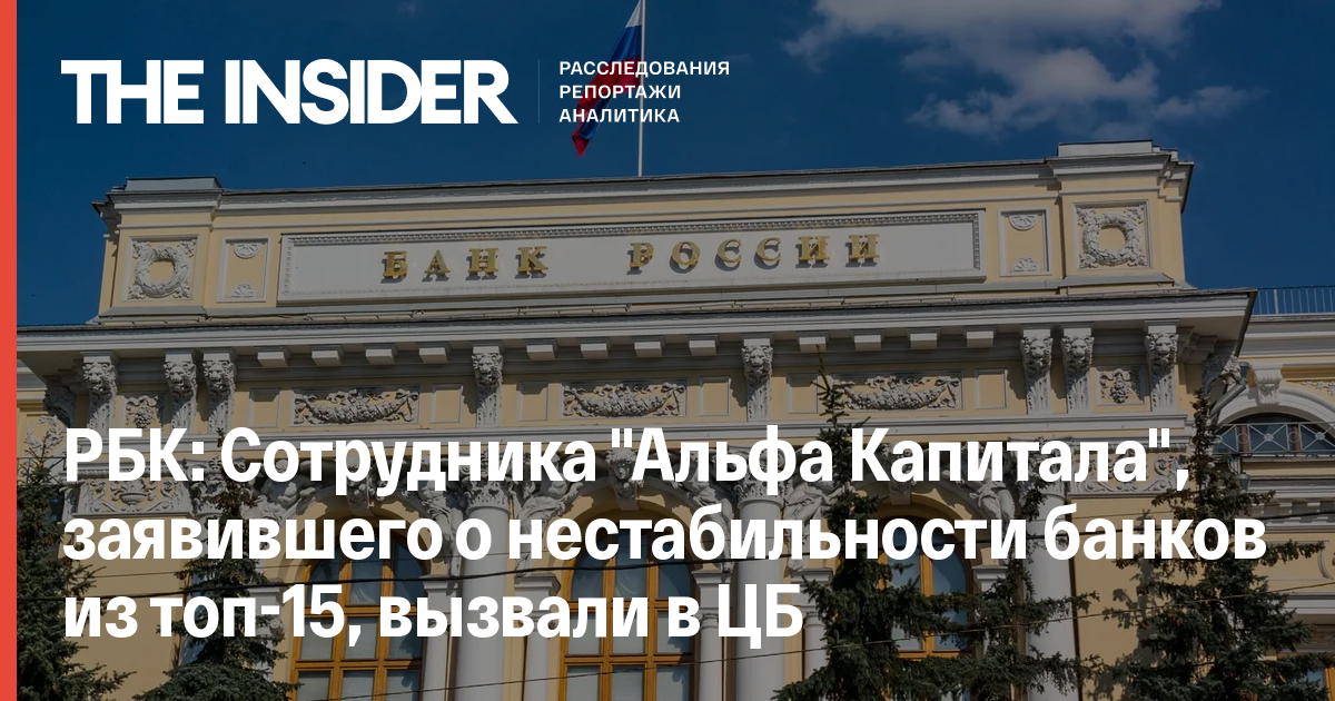 РБК: Сотрудника "Альфа Капитала", заявившего о нестабильности банков из топ-15, вызвали в ЦБ