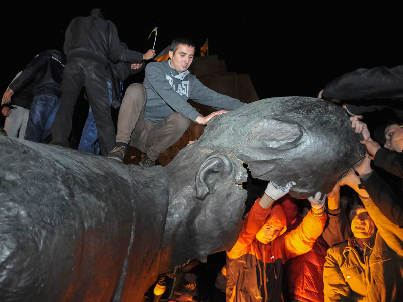 При этом "ленинопад", как СМИ назвали массовый снос памятников Ленину, начался на Украине еще до смены власти - в конце 2013 года и начале 2014-го на фоне выступлений оппозиции против отказа бывшего руководства страны от запланированного подписания Соглашения об ассоциации с ЕС. Первым и самым резонансным стал инцидент в начале декабря 2013 года, когда радикалы сбросили с постамента памятник Ленину в центре Киева. Памятники вождю пролетариата продолжили демонтировать по всей стране после свержения бывшего президента Виктора Януковича.