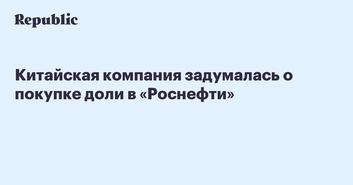 Китайская компания задумалась о покупке доли в «Роснефти»