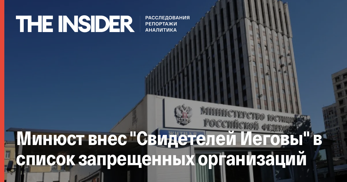 Министерство юстиции 16 августа включило «Свидетелей Иеговы» в перечень организаций, ликвидированных за экстремизм. Об этом сообщает пресс-служба ведомства.