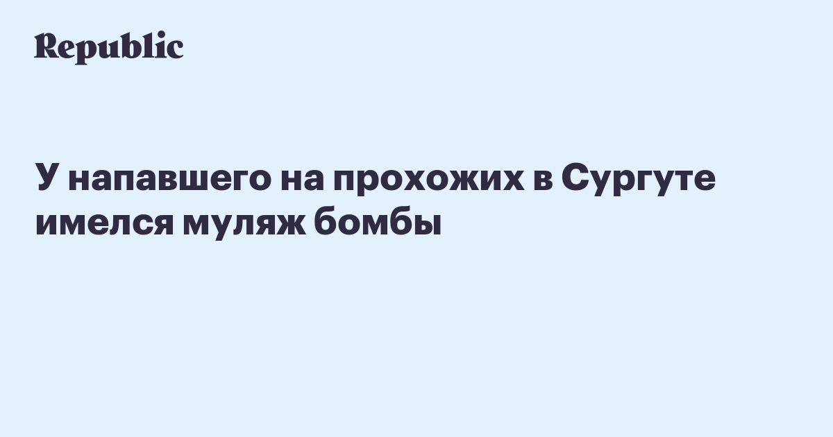 Мужчина, напавший с ножом на прохожих в Сургуте, имел при себе муляж бомбы. Об этом сообщило местное издание «СИА-Пресс» со ссылкой на источники в структурах гражданской обороны и чрезвычайных ситуаций.