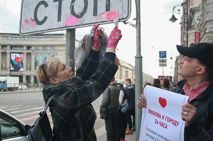 Самое большое общественное объединение в Петербурге, которое борется с незаконной рекламой, — «Красивый Петербург». В его группе во «ВКонтакте» состоит более 50 тысяч человек. Организация открылась в апреле 2012 года как региональное сообщество по улучшению городской среды. Через два года его активисты занялись борьбой с незаконной расклейкой рекламы.