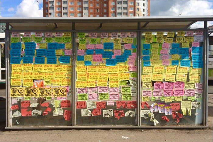 Как объяснил «Бумаге» Андрей (имя изменено по просьбе собеседника — прим. «Бумаги»), более пяти лет проработавший расклейщиком рекламы, с 2014 года большинство компаний, предлагающих плату за распространение рекламных листовок, перешло на новый способ оплаты. Организации платят своим работникам только в случае, если объявление провисит на одном месте несколько дней.