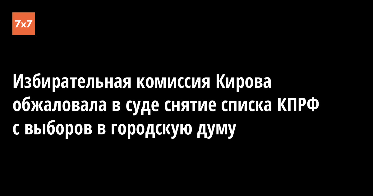 Кировская городская избирательная комиссия не согласилась с решением районного суда о снятии списка КПРФ на выборах в городскую думу и 22 августа подала апелляционную жалобу в областной суд. Об этом сообщается на сайте комиссии.