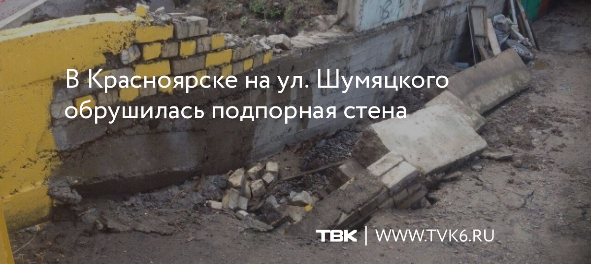 В Красноярске на ул. Шумяцкого обрушилась подпорная стена