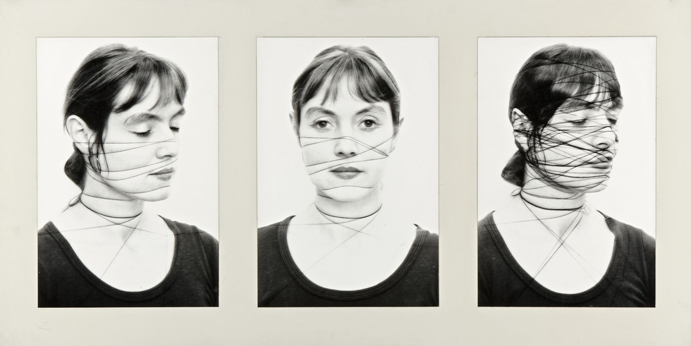 © Ulrike Rosenbach / Bildrecht, Wien, 2016 / SAMMLUNG VERBUND, Wien Ульрике Розенбах. Искусство это преступление No 4. 1969 На «WOMAN» присутствует сразу несколько работ, в которых сутью женственности становится не красота, а превратности самоопределения. Например, серия фотографий «Кризис идентичности» Алексис Хантер включает шесть портретов художницы. Пять из них сделаны ее друзьями — в основном фотографами и художниками, пол не уточняется. Здесь она предстает улыбчивой моделью с шелковыми волосами и манящим взглядом. С шестой же фотографии — автопортрета — на нас смотрит устрашающая гримаса, в которой испуг мешается со злостью. Работа Хантер визуализирует глубокий разрыв между тем, как ее видит общество, и тем, как воспринимает себя сама художница. Женщина, говорит Хантер, всегда живет двойной жизнью. Культура закодировала ее как объект, на который смотрят и чьей главной составляющей является оболочка, и поэтому каждая из нас идет по жизни, постоянно смотря на себя со стороны: «Какая я? Как я выгляжу?». Это бесконечное упражнение в объективации самой себя мешает нам сосредоточиться на том, кто же мы есть, когда на нас никто не смотрит. Именно стремление найти ответ на этот вопрос объясняет, почему главным медиумом феминистического авангарда стала фотография, а главным жанром — автопортрет. Камера с автоспуском дала художницам возможность взглянуть на себя со стороны холодным и честным взглядом техники. Она также стала идеальной метафорой женского положения на границе субъекта и объекта. Диалог с камерой позволил художницам показать себя такими, какими их никто не хочет видеть: ранеными, испуганными и тотально несвободными. На фотографиях из серии «Poemim» венгерка Каталин Ладик до неузнаваемости деформирует собственное лицо, по-разному прижимая его к стеклу. В серии автопортретов «Я» Аннегрет Золтау ее лицо и шея обмотаны нитью; на автопортретах под названием «Изоляция» Рената Эйзенгер использует в тех же целях изоленту. Все они играют с жанром портрета, пытаясь самостоятельно определить суть женственности, отбросив установку на красоту и привлекательность. Вывод неутешителен. Женственность — это серия бесконечных искажений и деформаций, за которыми не видно человека.