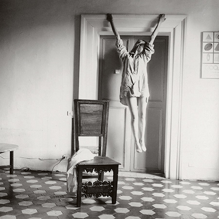 © George and Betty Woodman, New York / SAMMLUNG VERBUND, Wien Франческа Вудман. Без названия. Рим, Италия. 1977–1978/2006 «WOMAN» удивляет и до какой-то степени даже разочаровывает своей предельной строгостью. От искусства 1970-х годов, выставляемого в mumok, автоматически ожидаешь кровавого буйства венского акционизма. От феминизма с его социальной ангажированностью — негодования, выливающегося за грани белого куба. Вместо этого мы получаем абсолютно нейтральное пространство, логикой которого руководит геометрическая сдержанность, присущая и выставленным произведениям. Большинство объектов на выставке — черно-белые фотографии с центральной композицией. На втором месте — видеодокументация перформансов: четыре телевизора, складывающиеся в неизменный куб, отмечают середину каждого зала, кроме первого. Первый зал аккуратными рядами пересекают стеклянные кейсы со скульптурами Бриджит Ланг и Биргит Юргенсен. Вся эта суровая строгость здесь царит не случайно. Она как бы ненавязчиво дает вам понять, что революция — это буйство мысли, а не красок. Почему же? Причин две. Первая относится к истории женщин в искусстве и к сюжетным ограничениям, которые накладывались на леди, решившую дать волю своей креативности. Красок — цветочков, идиллических пейзажей и разноцветных нитей на пяльцах — всего этого в жизни такой леди хватало. Конечно, проблема заключается в том, что установка «ничего мерзкого» в этом случае также означала «ничего серьезного». Только в ХХ веке у художниц появилась возможность выбраться из клумбы и посмотреть на мир вокруг. На фотографиях Франчески Вудман цветочки в основном мертвые, на рисунке «Высохшие цветочки» Биргит Юргенсен — кровожадные. Мотивы традиционно «женского» искусства тут как бы вырываются из золотой клетки и ощущают на себе влияния реального мира.