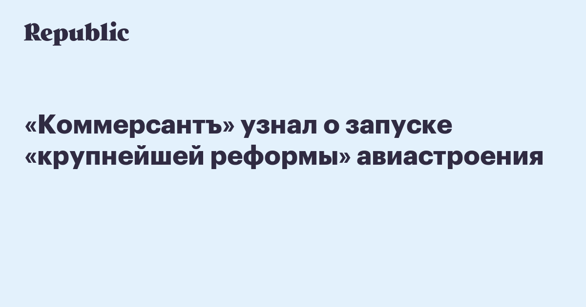«Коммерсантъ» узнал о запуске «крупнейшей реформы» авиастроения
