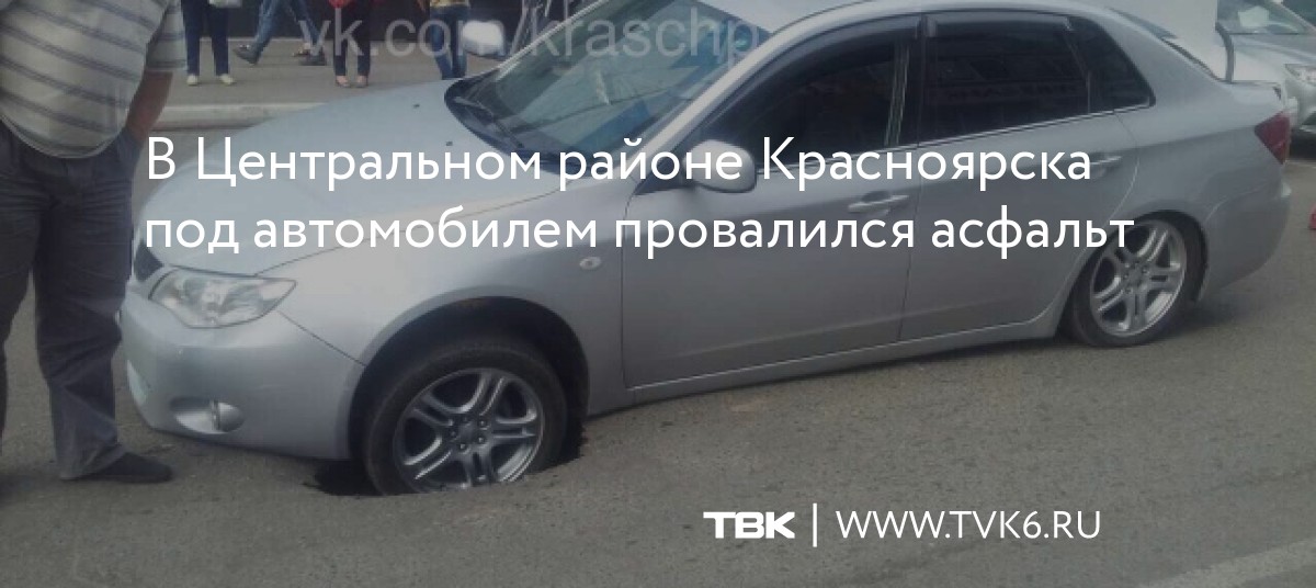 В Центральном районе Красноярска под автомобилем провалился асфальт