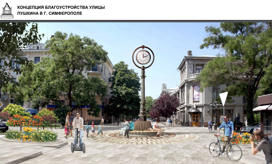 Летом 2016 года был обнародован и проект реконструкции центральной части Симферополя. Согласно эскизу, должна была измениться вся центральная пешеходная зона города. Там планировали заменить тротуарную плитку, установить скамейки и современное освещение, а также поставить декоративные скульптуры и высадить клены.