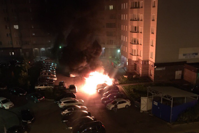 Ночью во дворе на Туристской улице сгорело четыре машины