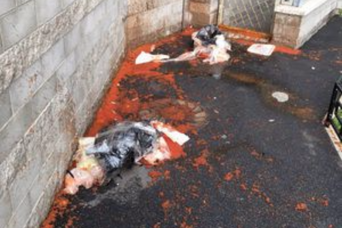 В Петербурге на припаркованные машины сбросили пакеты с красной икрой и диджейский пульт