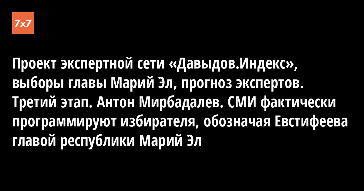 Проект экспертной сети «Давыдов.Индекс», выборы главы Марий Эл, прогноз экспертов. Третий этап. Антон Мирбадалев. СМИ фактически программируют избирателя, обозначая Евстифеева главой республики Марий Эл