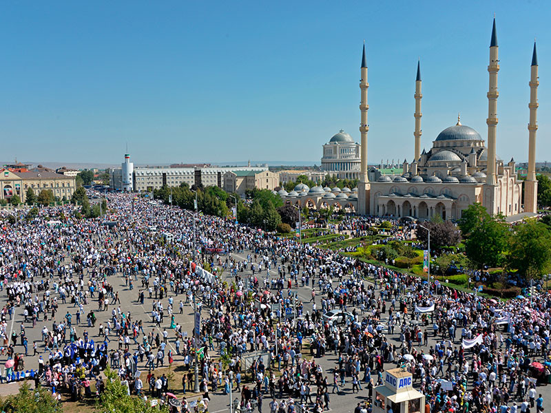 В столице Чечни Грозном утром в понедельник, 4 сентября, начался митинг в поддержку мусульман Мьянмы. На акцию, прямую трансляцию которой ведут телеканал "Грозный ТВ", RT и телеканал "Дождь", пришли тысячи людей.